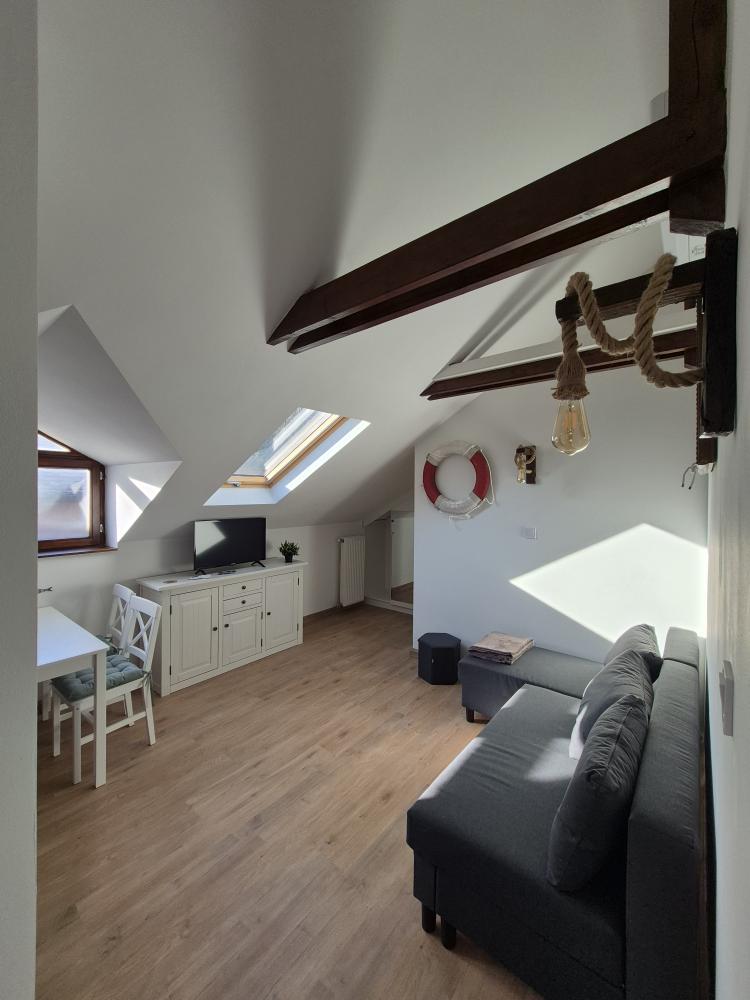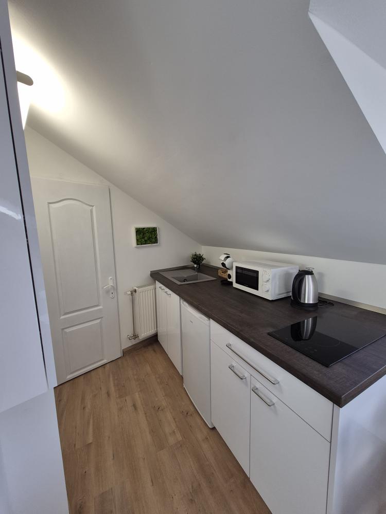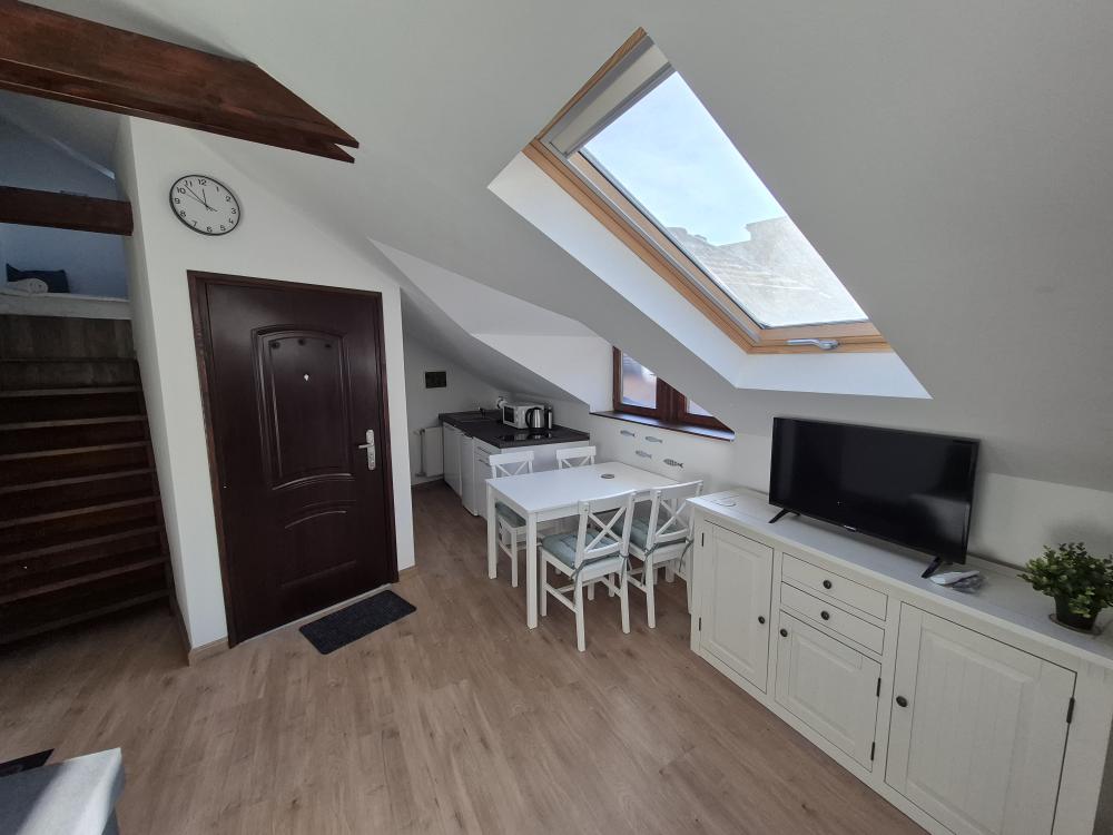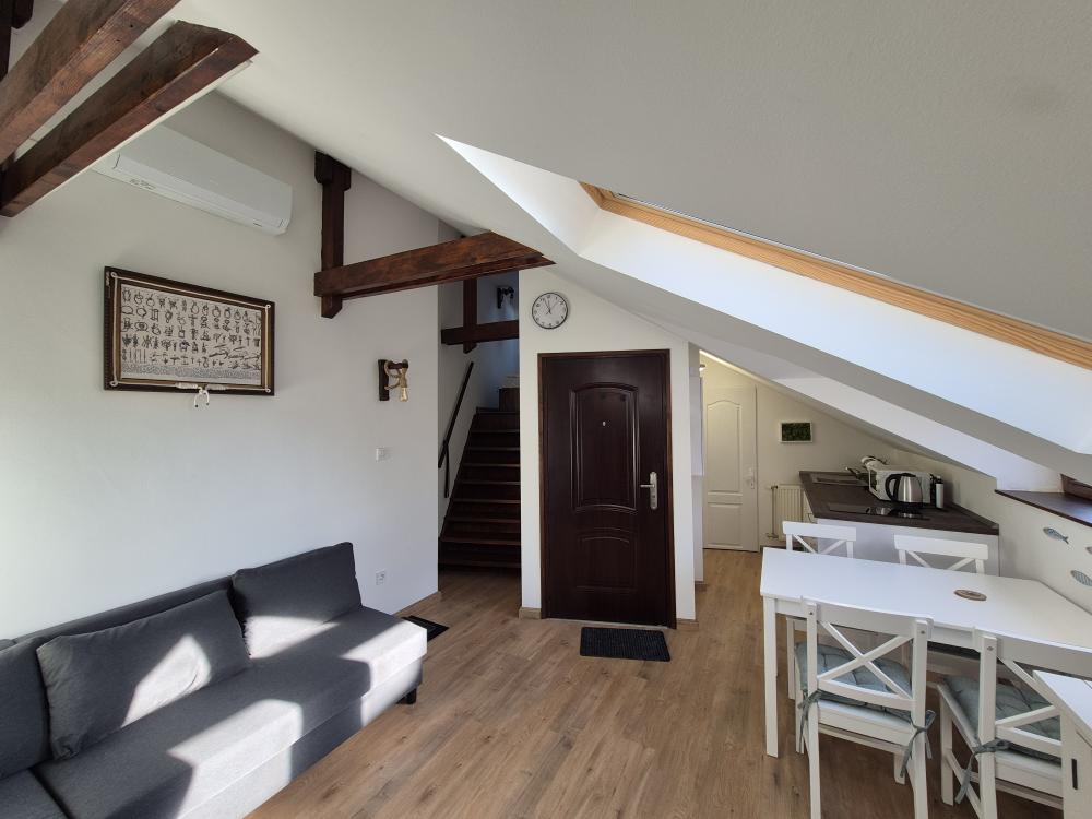 26 nm2-es hangulatos, tetőtéri manzard apartman egyedi kialakítású galériával, felszerelt teakonyhával,