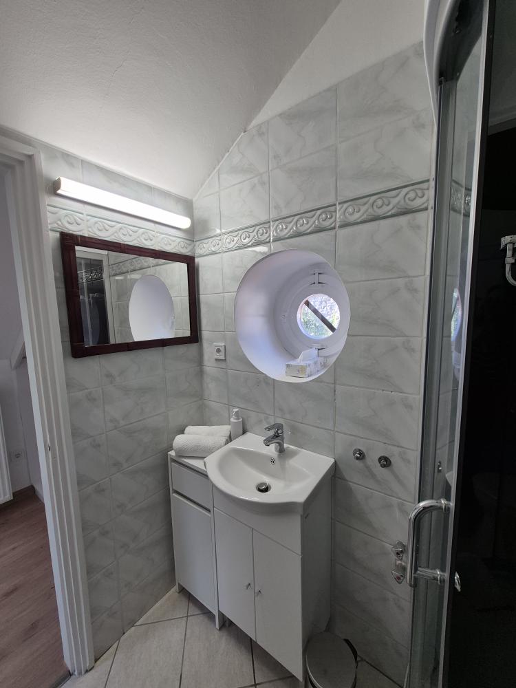 A 80 m2-es, első emeleti,légkondicionált loft lakás az apartmanház igazi zászlóshajója. Páratlan méretek,6,5 m-es belmagasság, 77 m2 egyben! Igazi lakosztály, saját biliárd asztallal, 2 m átmérőjű LCD TV-vel, természetesen ingyenes wi-fi-vel. Saját terasz résszel, mely a Szamárhegy meredek lejtőire néz. A másik irányban az ablakok csendes sétálóutcára néznek.