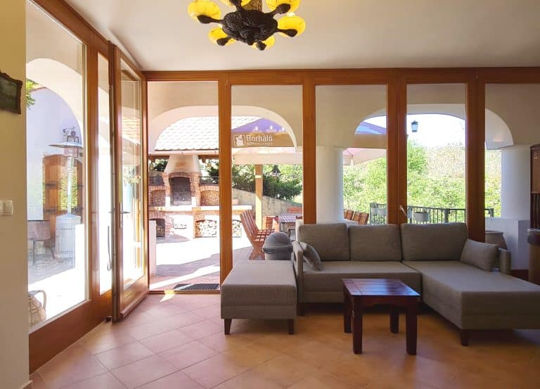 … mutass többetZalai prémium villa, kültéri medencével, szaunával,grillterasszal.A Vendégház összesen öt, kétágyas, (pluszpótágyazható) hálószobával rendelkezik, amelyekhez saját, hidromasszázskabinnal felszerelt fürdőszoba tartozik. 16-18 fő részére nyújt kényelmes és felejthetetlen élményt.A hálószobákat átjárja a melegség és a romantika:fenyő hajópadló, kellemes hangulatú bútorok és apró virágmintás függönyökkel keretezett ablakok, melyekből csodás kilátás nyílik a Zalai dombokra. A közös helyiségek, mint a teljes körűen felszerelt konyha és a kandalló melegével áthatott, társalgó rendkívül ideálisak kellemes családi, baráti összejövetelekre.A vidéki hangulatot idéző kiegészítők, a bontott téglából épített bárpult, a közeli dombokra néző ablakocskák pedig garantálják a tökéletes kikapcsolódást.A társalgóból a teraszra lépve a szemet gyönyörködtető szőlőhegyek és a boros pince vastag tölgyfa ajtaja ölelnek körül, remek hangulatot adva egy meghitt esti beszélgetéshez egy pohárkellemes zalai bor társaságában.Különleges, épített, kéményes grillező,bekészített tűzifával a grill esték elengedhetetlen kelléke.